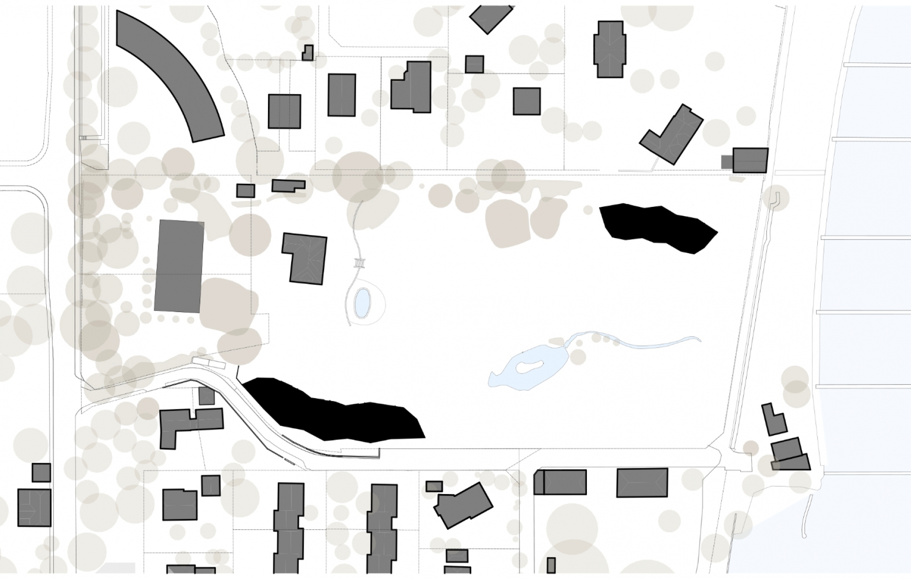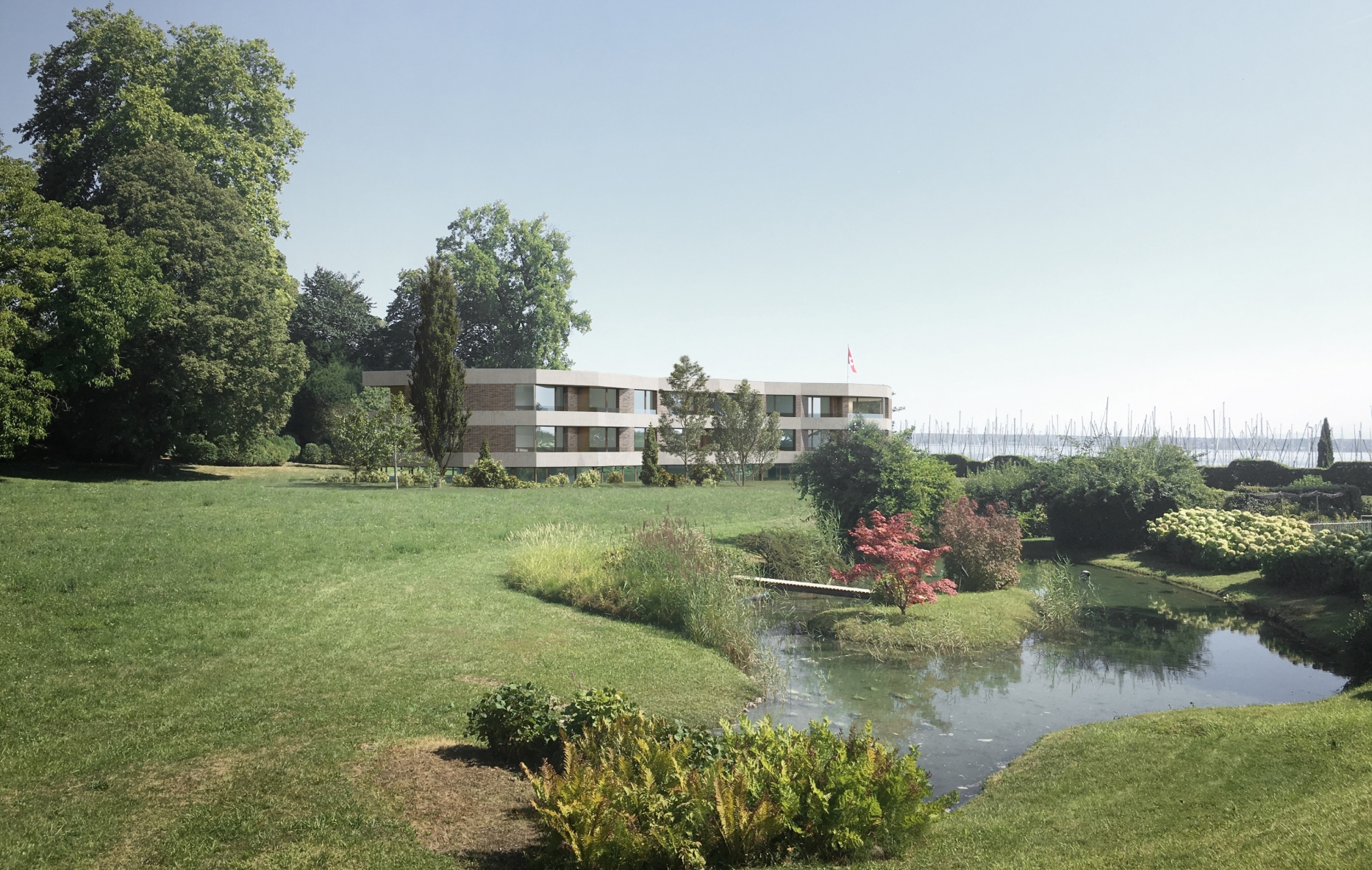 L’évidente valeur patrimoniale du lieu est le fruit d’un savoir-vivre qui inclut le respect du bâti, celui de la nature environnante et du rapport inhérent qui existe entre l’un et l’autre. Intégrée au fil des générations, cette réalité demande une attention soutenue et un soin permanent au site. Plus prosaïquement, elle implique des charges d’entretien conséquentes qu’une densification maîtrisée présenterait l’avantage d’alléger. Si elle n’est pas remise en question par le régime foncier –le terrain se trouve en zone villas, dans le périmètre protégé des rives du lac– la valorisation des droits à bâtir semble peu compatible avec les qualités architecturales et paysagères en place. Le défi consiste alors à maintenir les fondements typologiques de la maison de maître et, en même temps, à offrir aux futures constructions les avantages d’un site complètement dégagé.