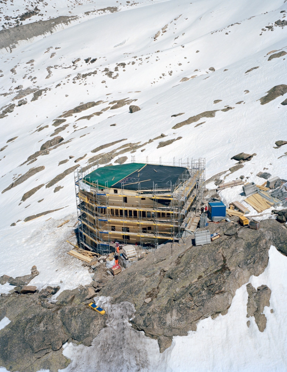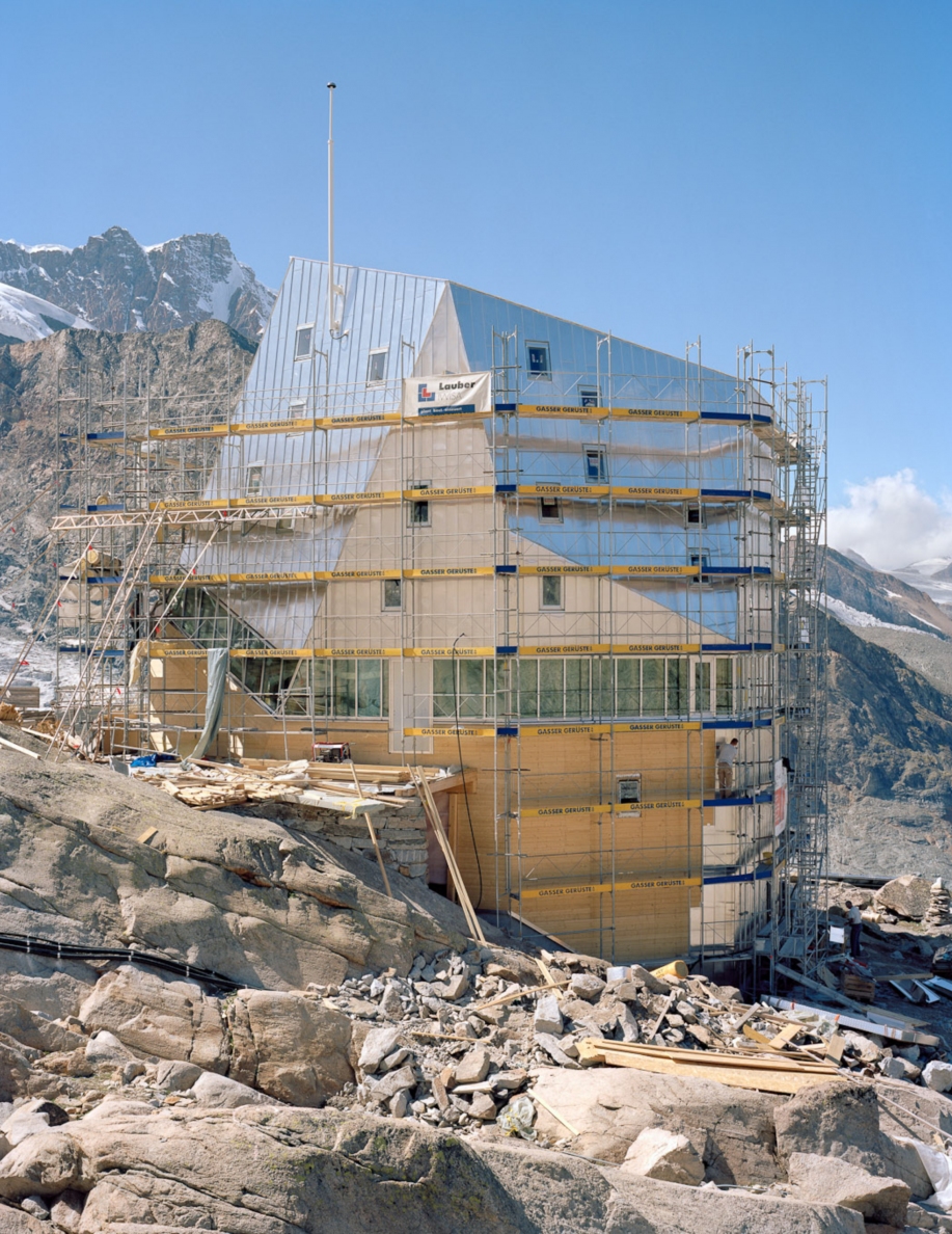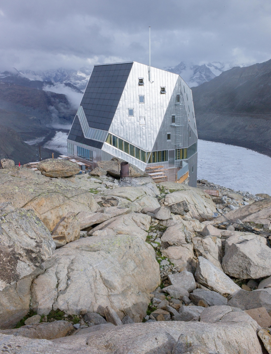 La cabane de la section CAS (Club Alpin suisse) du Mont Rose s'empare du paysage et de la lumière de haute altitude car sa façade en aluminium argenté reflète l'environnement. Sa construction et sa technique sont le fruit des étudiants de l'EPF (école polytechnique fédérale), sous la houlette du Dr Meinrad K. Eberle. Le bâtiment s'avère quasi autosuffisant sur le plan énergétique, les eaux usées sont recyclées. La cabane sert également à l'EPF d'objet de recherche dans les secteurs de l'énergie et de la technique du bâtiment. Après son ouverture en 2009 et lors des années suivantes, la cabane surnommée "Cristal de roche" a été prise d'assaut à cause de l'intérêt mondial pour son architecture et son design.