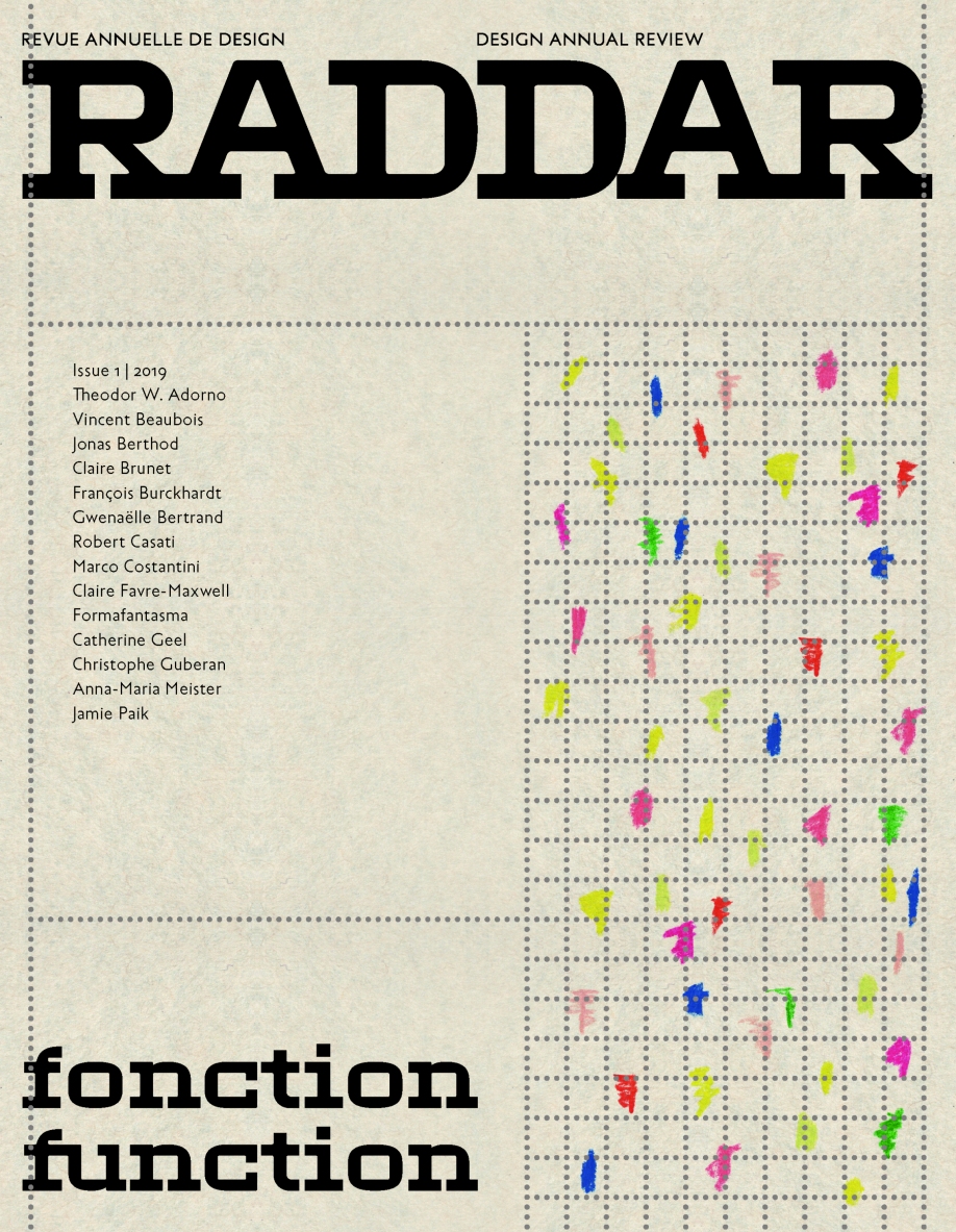 Nous sommes fiers de participer à la création de la nouvelle revue RADDAR (Revue annuelle de Design / Design Annual Review), bilingue français/anglais, elle est coéditée par la toute jeune et petite maison d’édition parisienne T&P Work UNit.