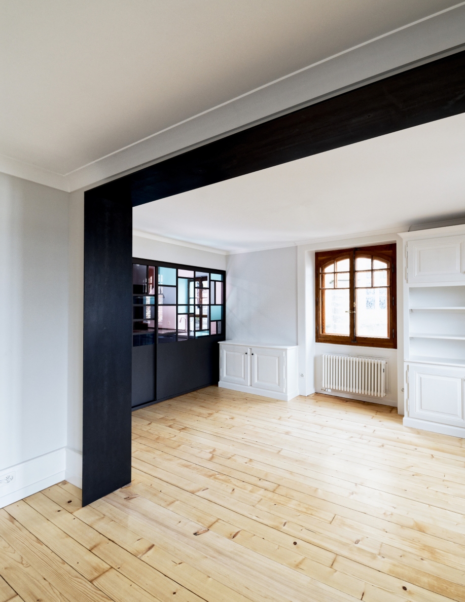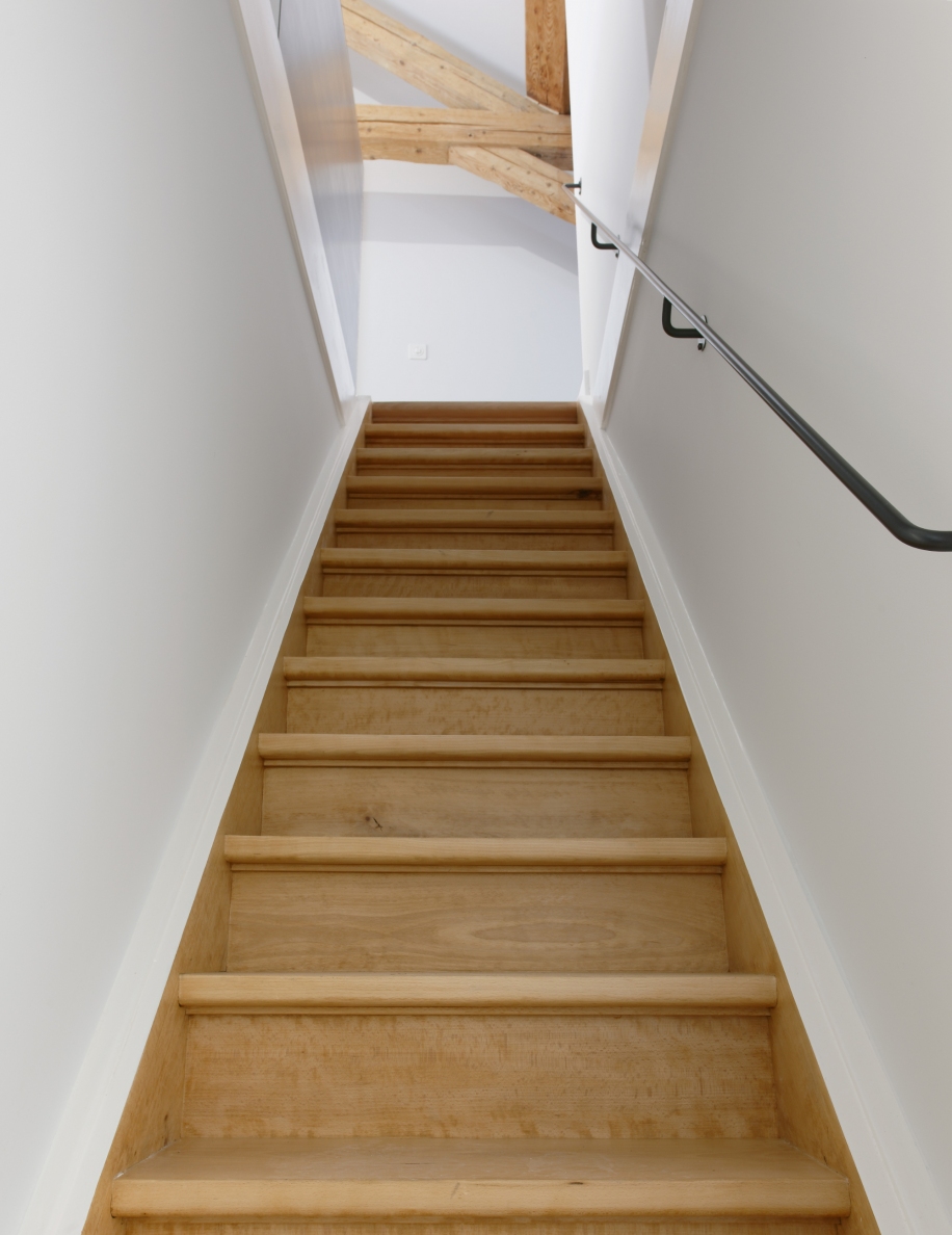 Le parti retenu considère que toutes les strates du passé méritent la même attention. Sans hiérarchie qualitative, chaque époque se révèle par des interventions sobres qui visent à revaloriser les éléments dans leur matérialité comme dans leur usage. Le principe typologique d’origine se voit ainsi conservé, hormis quelques modifications mineures liées à l’aménagement des pièces d’eau. L’authenticité du lieu réapparaît dans des espaces simples et intimes, habillés de revêtements à la fois humble et noble tels que le bois, la pierre, les enduits à la chaux ou les carreaux de ciment teintés dans la masse. Discrètes ou conséquentes, les parties neuves affichent quant à elles un vocabulaire contemporain, cadré par des matériaux laissés bruts. Niveau après niveau, un concept chromatique singularise chacune des pièces, offrant à l’ensemble une homogénéité subtile et harmonieuse.
