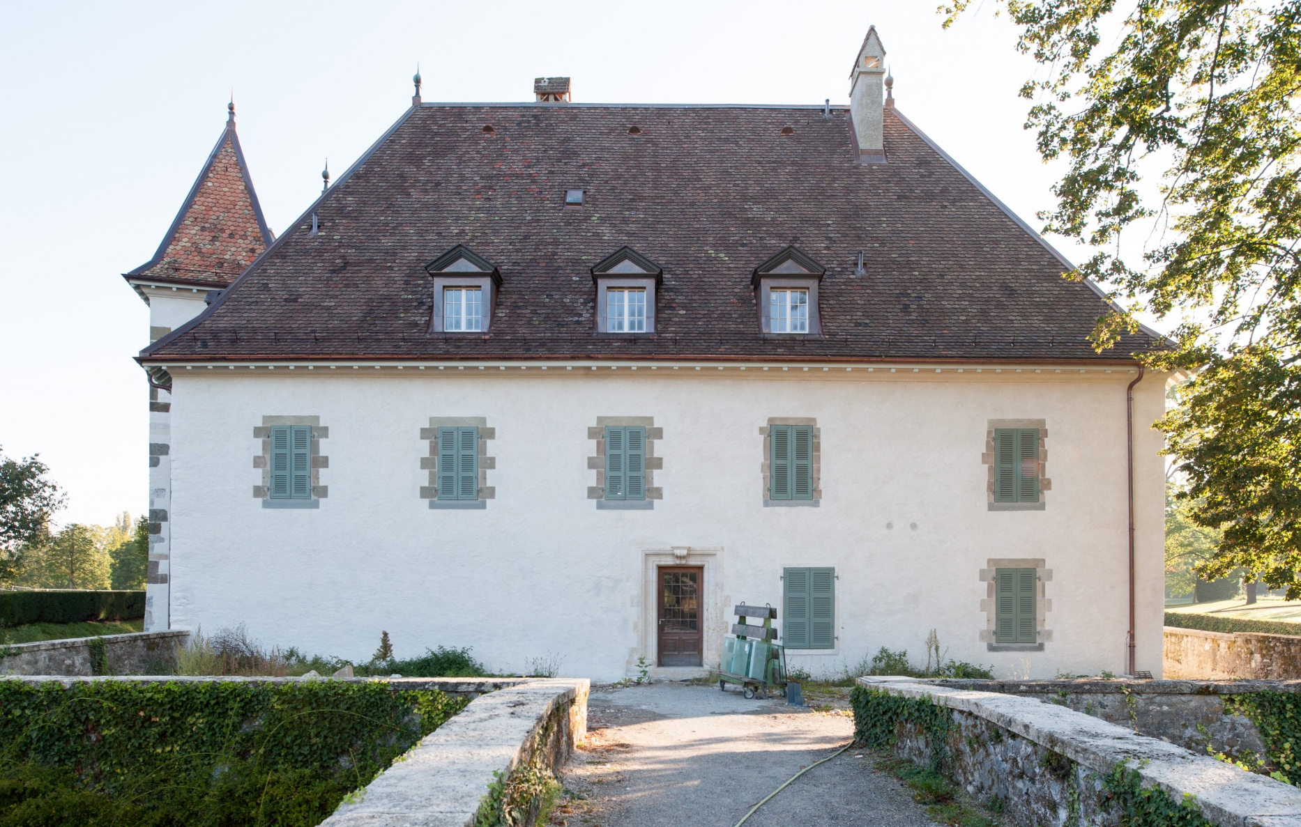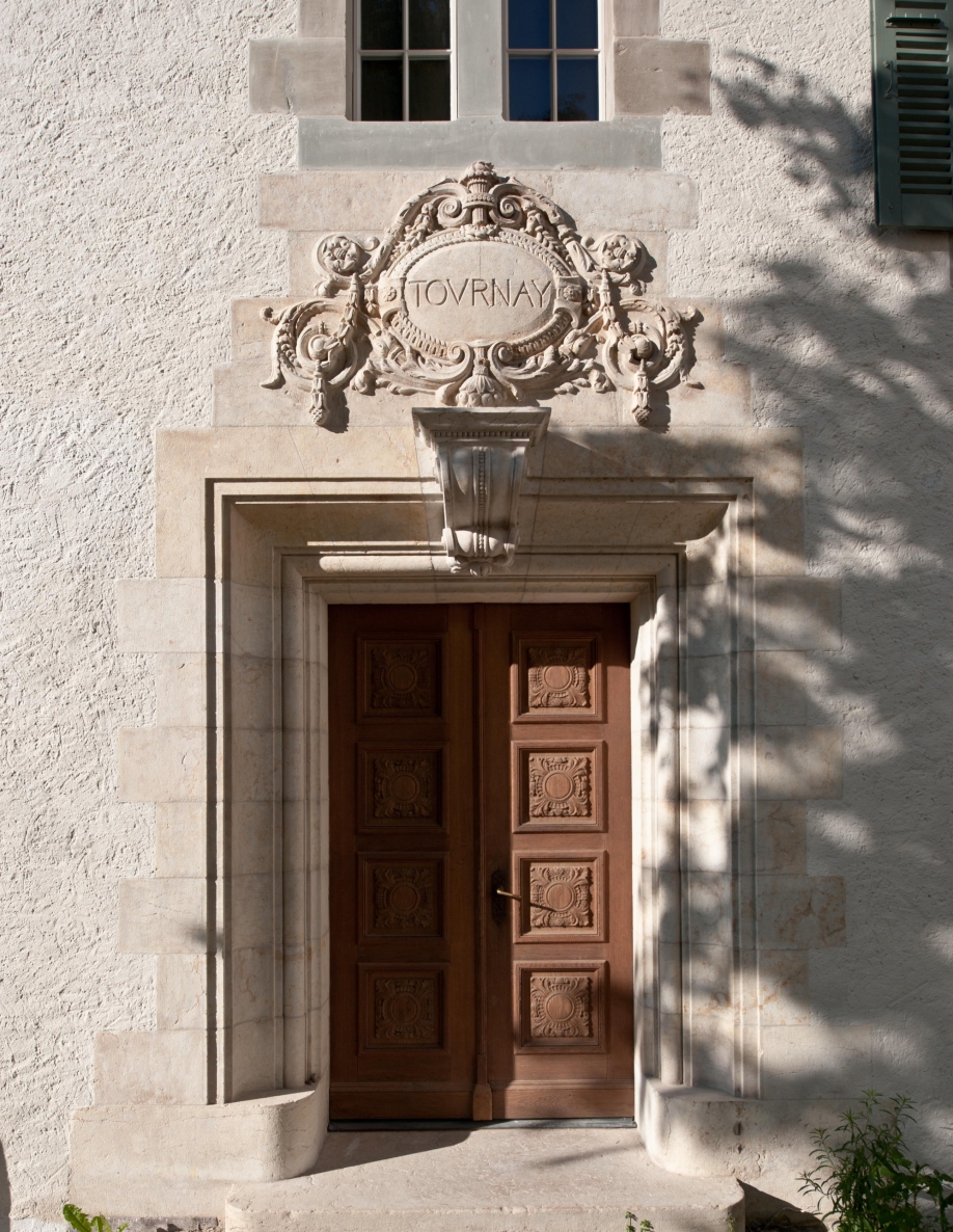 Lorsqu’il en fait l’acquisition en 2009, le nouveau propriétaire trouve le château de Tournay dans un drôle d’état, à la fois figé dans sa réalité centenaire et comme arrêté en pleine phase de transformation. Cette impression paradoxale mais pas tout à fait fausse s’explique par l’histoire singulière du lieu. Aujourd’hui blottie sur les hauts du village de Pregny et suffisamment en retrait des voies de circulation pour ne pas subir les regards indiscrets, la bâtisse a été conçue à la fin du Moyen Âge comme maison forte. Rapidement, l’affectation militaire défensive fait place à un usage d’habitation. En quelques générations, on comble les fossés et rase les murs d’enceinte.