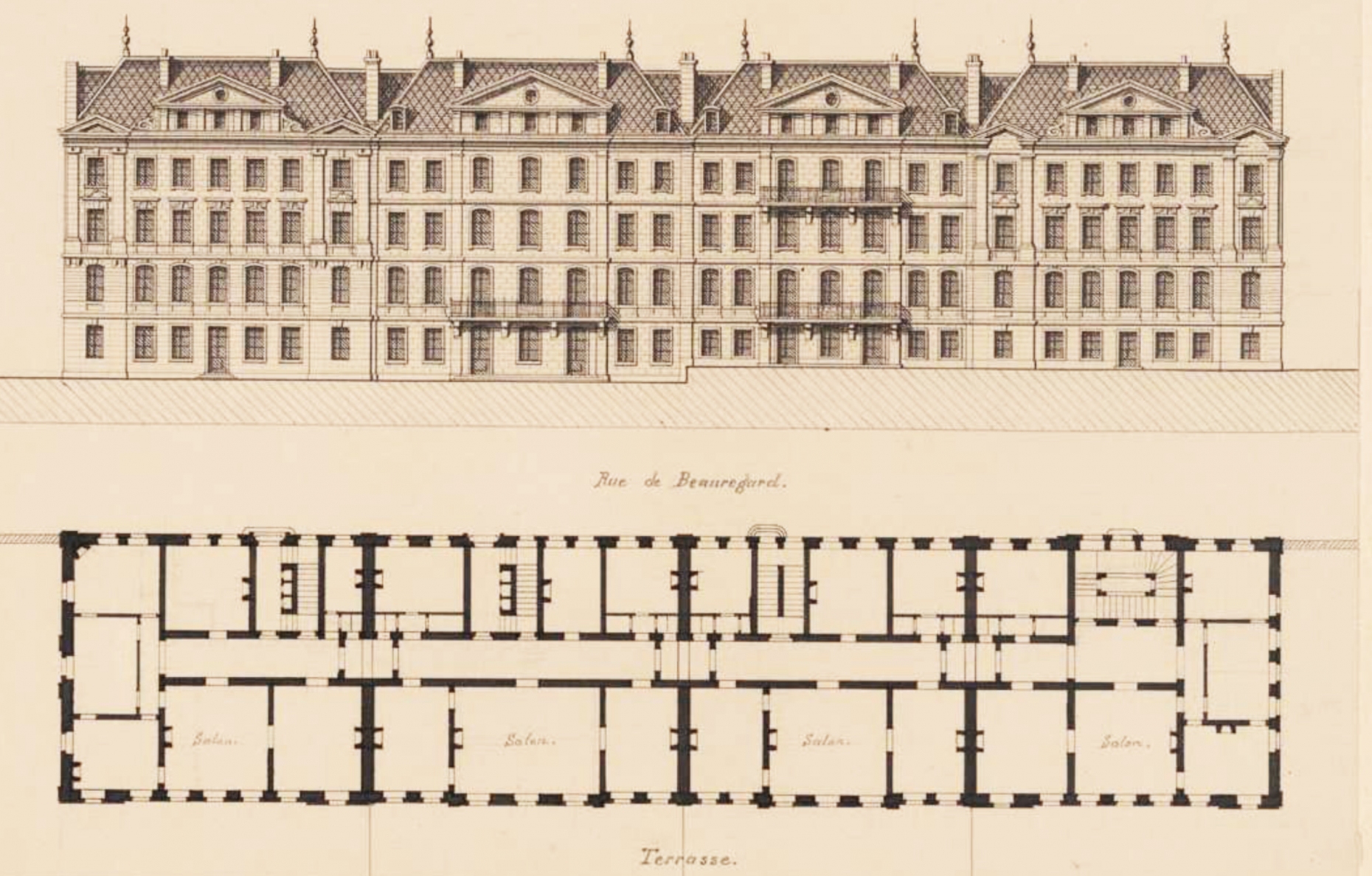 Si elles paraissent sans doute un peu hardies, la question et sa réponse pointent néanmoins les qualités exceptionnelles de ce bâtiment édifié en 1774-1777 pour le conseiller Isaac Louis Thellusson. Posé sur les remblais instables des fortifications, le volume est porté par deux niveaux de sous-sol trouvant appui sur une couche souterraine dure et solide. Avec quatre entrées distinctes, il impose sur le territoire de la ville l’une des toutes premières formules de maisons locatives, concept très novateur pour l’époque à l’origine des immeubles d’habitation courants qui, peu à peu, caractériseront les quartiers genevois. Véritable chef-d’œuvre classicisant, l’édifice révèle une composition de façade tout à la fois harmonieuse et sévère, avec de nombreux ornements d’une très grande finesse. S’ajoutent à cette somptuosité une orientation parfaite avec un dégagement plein Sud ouvert sur la place des Casemates, ainsi qu’un environnement privilégié aux pieds de la Vieille-Ville, à deux pas du parc des Bastions et à proximité directe des palais Eynard et de l’Athénée.