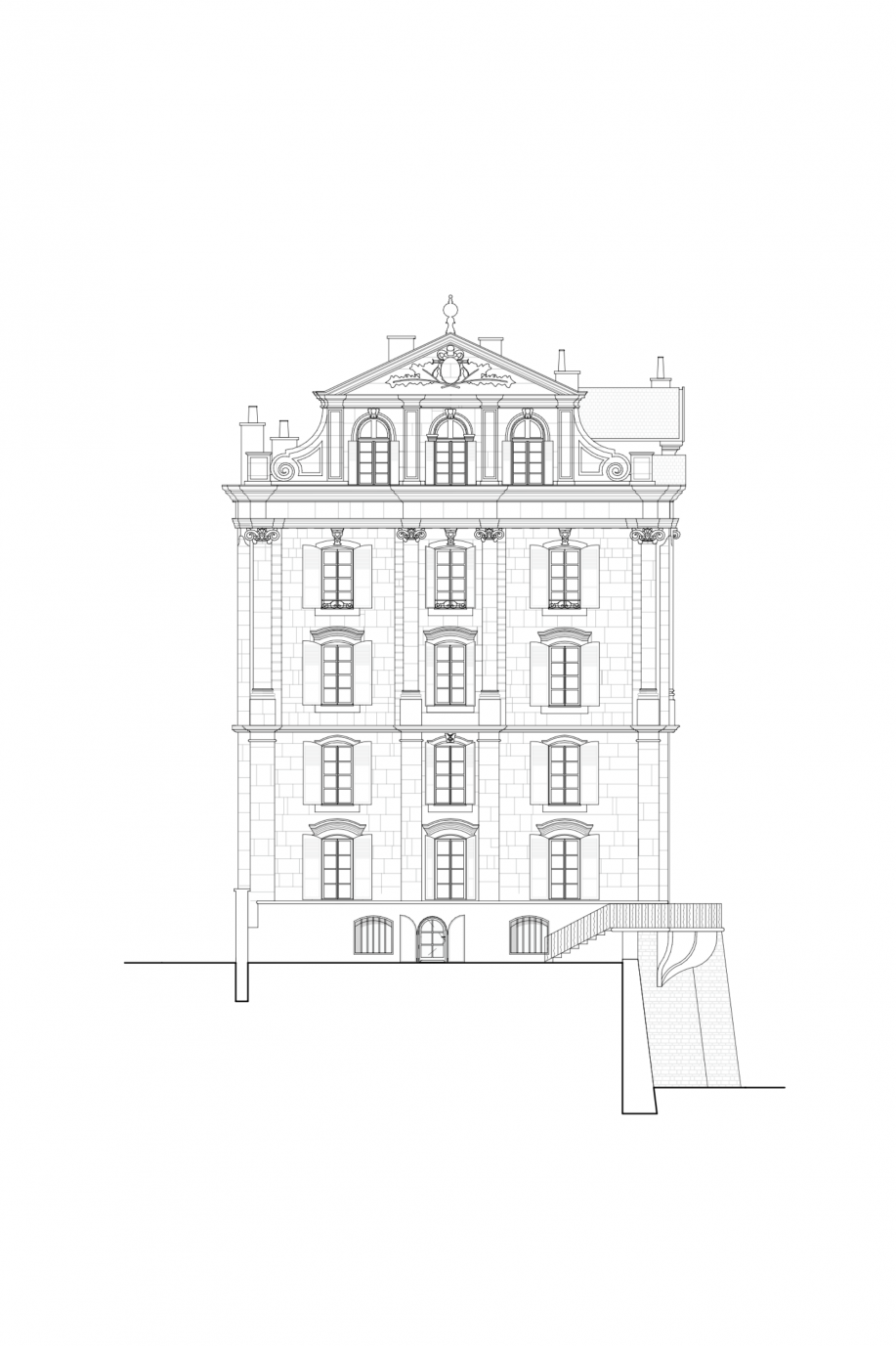 Comme presque toujours et comme presque partout, le bâtiment a connu au cours du temps d’importantes transformations qui, heureusement, n’ont pas souillé la noblesse de ses façades ni l’authenticité de ses espaces intérieurs. Il faut voir que depuis une vingtaine d’années plusieurs des grandes campagnes de rénovation et d’entretien se sont vues conduites. Cette réalité assure des interventions unifiées sur l’enveloppe ou les jardins, les surfaces communes ou les appartements privés. Une dynamique qui induit une connaissance approfondie du site fondée sur des recherches en archives, un regard attentif et constant sur les pathologies du bâti et, bien entendu, une expérience avérée dans le domaine pointu de la conservation du patrimoine.