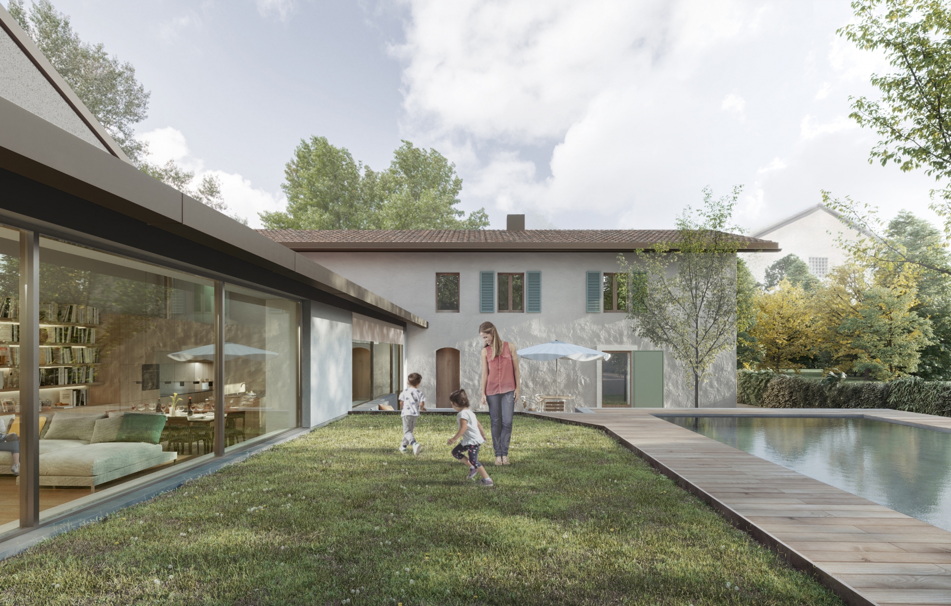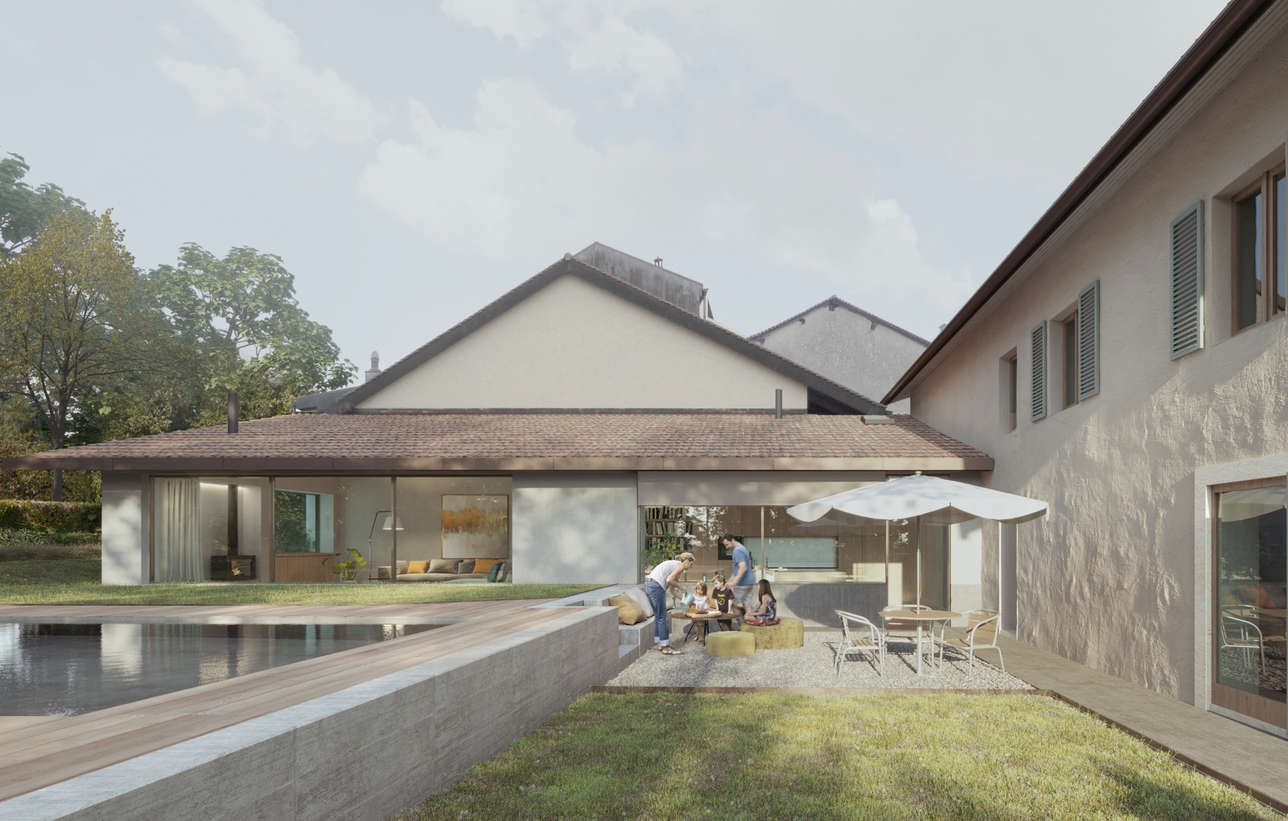 La maison anciennement divisée en quatre logement à Tannay (VD) sera totalement transformée et rénovée pour offrir une habitation unique sur une parcelle de 554,00 m2 dont 245,50m2 habitable, 350 m2 de jardin et terrasse comportant la piscine.
