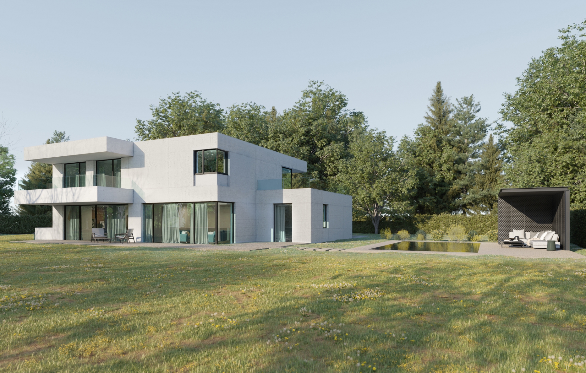 Une maison familiale au charme estival qui prend place dans l'un des grands domaines patrimoniaux du canton. Un programme en béton, qui fait autant appel à des références historiques qu'à des réalités topographiques.